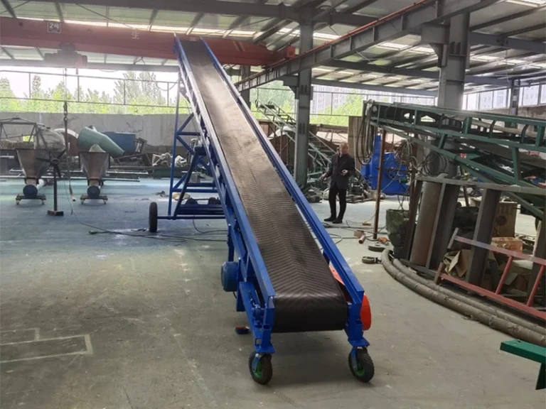A lightweight mobile belt conveyor for both bulk and packed material transportation, with anti-scratch and anti-breakage design, suitable for alternating transfer of bulk and packed materials in warehouses, construction sites and mines.