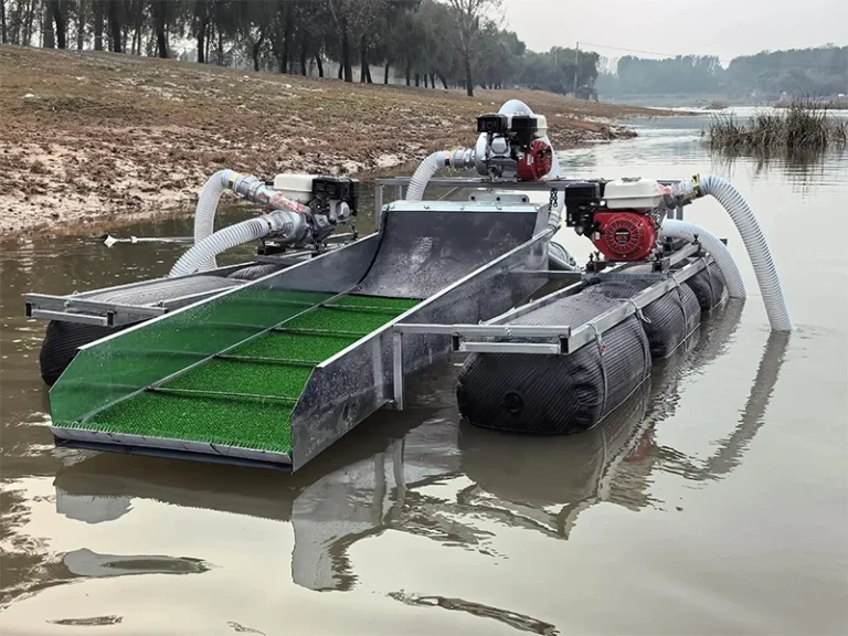 The double power siphon gold dredger is a core upgraded equipment for underwater placer gold mining, equipped with dual diesel power systems, supporting 24-hour continuous operation and achieving a gold recovery rate of over 95%, which is suitable for various complex water areas such as rivers, beaches and reservoirs.